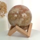 將瑪瑙晶洞切磨成球狀,呈現溫潤晶亮的質感,俗稱開口笑,是很人氣的風水擺飾。