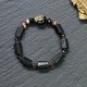 黑碧璽原石x幽靈水晶x黑曜石x鑽切茶晶x椰殼x金曜石龍龜純銀手鍊