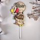 Crafted in multiple wooden layers, this topper combines elegant shapes and vivid hand-painted finishes to bring the moonlit swing and astronaut to life. The layering creates depth and visual interest, while the smooth, painted details add a vibrant, playful appeal. The topper is designed with a clear acrylic stem that inserts securely into the cake, providing stability and a polished, food-safe finish.