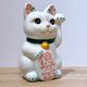 招財貓表面使用花結晶釉,展現出獨特的結晶效果,增添了藝術感和層次感。釉面光滑,透出自然的光澤,使整體看起來更具質感。清水燒的招財貓不僅是家居裝飾品,更是一件高雅的藝術品,展示了精湛的工藝技術和文化內涵。