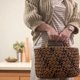 こちらはクラフトバンドで作った、花結び模様のバンブーハンドルかごバッグです。