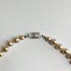 オールノットネックレスの特徴として、万が一糸が切れた場合でもばらばらにならず最小限で抑えられる点や、玉同士が密着していないので擦れあいにくく傷も付きにくい点・また玉同士が少し離れている為、首回りにフィットしやすくなっている点等がございます。この仕様は特に海外で人気があり、比較的高品質アクセサリー類によくみられる仕様です。※弊社の自社工場にて塗装したパールになります。品質の状態も維持されており、剥がれや大きな目立った傷などもございません。稀にピンホールや小さい凹み等が見られる場合がございますが、自社にて検品の上、品質に問題は無く許容範囲とさせて頂いております。