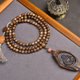 **〔 簡介 〕:**隨形越南芽莊沉香彌勒佛 佛牌項鏈,老料全手工精工打磨,雕刻,軟絲沉香,佛牌尺寸70×30公釐。採用8公釐108顆加裡曼丹沉香佛珠項鏈,沉香天然的油線,香味醇正,搭配緋紅瑪瑙蓮花珠,檀木蟬/橄欖核佛手 關注設計館送優惠券!