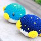 鼓成一個小圓球的河豚,連眼睛仔漲起來的小圓點,看起來一點殺傷力都沒有,哈哈。嘗試在底色中加入一些異色斑點當作尖刺,結果毫無作用,小河豚依然看上去一臉人畜無害。我盡力了。