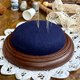 50721-迷人的法國古董木質底座藍色絨面針插 Charming French antique pincushion