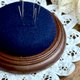 - 迷人的法國古董木質底座寶石藍絨面針插,是縫紉桌上的實用工具,更是一件優雅桌面藝術。沉靜內斂的寶石藍高密度絨面,色澤深邃而高貴,完美鑲嵌於溫潤厚實的深色實木底座之上,木紋細膩,光澤古樸。