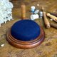 迷人的法國古董木質底座寶石藍絨面針插,是縫紉桌上的實用工具,更是一件優雅桌面藝術。沉靜內斂的寶石藍高密度絨面,色澤深邃而高貴,完美鑲嵌於溫潤厚實的深色實木底座之上,木紋細膩,光澤古樸。