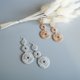 這款耳環以極細金屬線手工鉤織出12mm、16mm、26mm三種尺寸的圓形圖樣,層層堆疊出大器又不失輕盈感的設計。