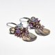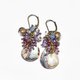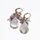 アバロンシェルとたわわなアメジスト&ガーネット、ハーキマーダイヤモンド、アクアマリン、民族鈴を繋いだピアスです。