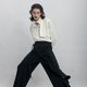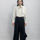 系列將原住民圖騰與現代設計元素巧妙融合:設計師解構並重塑經典千鳥紋,將烏鴉飛翔的姿態與羽翼融入幾何單元,捕捉展翅動態,創造全新印花語言。色彩上,橄欖綠象徵隱秘與深沉,熾焰紅致敬烏鴉創世的傳說之光,寂靜灰則呈現時間與記憶交錯的沉靜氛圍。印花隨模特步伐律動,如同烏鴉的翅膀在服裝上翱翔,展現動態的神秘美感。