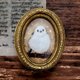 白くてかわいいシマエナガという小鳥を描いた絵画です。アンティーク調の小さな額縁に収めてお届けします。