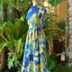 【平置寸法】バスト:約48cm 肩幅:約45cm ウエスト:約50cm 総丈:前約117・後ろ約123cm 袖周り:約40cm リボンベルト:約140cm
