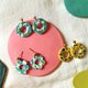 ● 耳環皆採用美國無毒軟陶手工製作,並經過烘烤定型,堅硬帶有韌性,不小心手滑掉在地上也不怕破掉或裂掉,質地防潑水滑面,可基本生活防水沒問題,顏色不怕退色、掉色