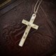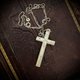- 義大利製珍珠母貝十字架項鏈,十字架以天然珍珠母貝雕製,映出柔和光澤,鍊身為925純銀並刻有義大利印記。約1950年代出品,優雅中帶著信仰的力量。