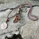 這款部份的材料是西藏喇嘛們來香港講經時帶來的手工製作祈福小飾物,餘下來的小飾物一直被團體好好保存,最近因為存倉關係加上朋友介紹而落到設計師手中。
