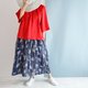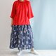 藍色の地に竹林の模様の浴衣地で毎年人気のフレアスカートをつくりました。