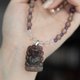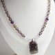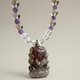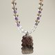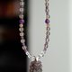 極光23水晶,手工雕刻九尾狐,造型飽滿圓潤,整體灰紫色調,自上而下是紫鈦晶、黑羽極光。以狐牌顏色搭配了珠鏈,茶晶、紫水晶、白水晶、銅發晶。