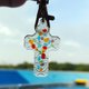 海棠窗花是我們小時候窗戶裡的視角,而十字架是代表對於信仰中的受難與救贖,