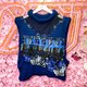 OTT獨一無二•Unique 藍色刺繡蕾絲jacquard格仔蝴蝶毛衣背心