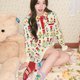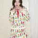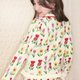 胸前設置單口袋,局部配色呼應門襟與花卉色彩。 翻領與開襟紐扣結合,輔以波浪花邊,提升精緻感。 擬人花朵,色彩飽和度高,整體俏皮復古,完整性強。 羅紋腰頭設計,保證了回彈性,也在視覺上形成自然收束