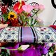 当店の作品は、美しく可愛いデザインのインド刺繍やチロリアンテープ、または丁寧に作られているレースのリボンなどと、美しい艶感のあるリボンを一枚一枚厳選し、それらをアレンジして組み合わせる事で一枚の布にしています。そして、その一枚布を作品として形作っています。必ずどこかにキラキラの輝きを取り入れている、完全オリジナル作品です。