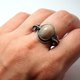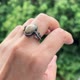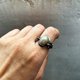 **獨一無二作品** 彷彿將山林的靜謐氣息封存在指間,銀葉繞著寶石生長,像是自然的守護者,悄悄守護著這片平靜。此戒指以925銀製作,最寬處為17mm,尺寸 #12。