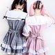 使用陽光麻拼接格紋布料製成的地雷量產風格洋裝