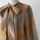 日系日本製復古70年代剪裁長袖咖啡橘漸層格子古著襯衫-T049