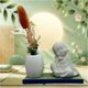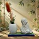 -- 套件含: 小佛, 石膏圓罐. 乾燥花.小咖啡瓶.擴香棒乙支.榻榻米版(材質樹脂)