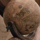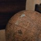球體表面覆著泛黃的古地圖紙,邊角微翹,色澤斑駁,字跡微褪卻仍可辨讀