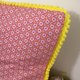 北歐風格粉色幾何花花圖案黃色小毛球色邊抱枕/靠枕