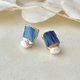 上品な藍色の陶片に淡水パールをあしらいました。