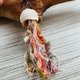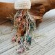 以珍珠絲麻纖維鉤織而成的水母主體,輕軟珠透搭配不同日本職人手染紗線而成為纖長的水母腳~