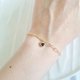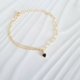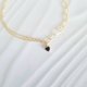 以兩款14K包金鍊配搭成左右不對稱的設計,簡約之中更顯獨特,配襯一個深寶藍色鋯石迷你桃心吊墜,小巧的配飾讓手腕更纖巧精緻。