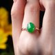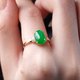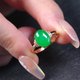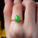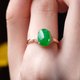 - 【名稱】冰種正陽綠翡翠蛋面戒指 18K金鑽石 【尺寸】裸石尺寸10.4x7.5x3.2mm 國際11.5圍 【產地】緬甸 【顏色】綠 【備註】天然緬甸玉A貨翡翠 【編號】瓔珞戒指097