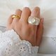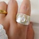 A delicate K10 ring combining natural Moonstone and mother-of-pearl (夜光貝).