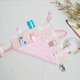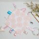 【安撫巾】20cm×20cm,表布/日本二重紗、韓國豆豆布,內有響紙,並附圓形透明搖鈴(內有彩球)、奶嘴夾。