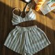 this set comes in 2 pieces; a bralette and a super cute vintage wide-legged shorts!
