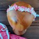 The cute headband is made of lace of different texture with embroidered beads and stones.