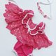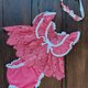 The dress is made of lace fabric and decorated with cotton lace. The back of the dress has a deep V-neck, the back of the dress is fastened with ribbons.