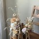 使用花材:永生庭園玫瑰、玫瑰、百日菊、繡球、柔麗絲、兔尾草、乾燥煙霧樹、棉花、蕨葉、佳那利、尤加利、滿天星……等數十種花材堆疊設計。