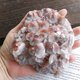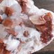 --這顆紅方解石是二次結晶方解石,第一次結晶的部位是紅色(已被二次結晶包裹在裡面),二次結晶是外層霧扁平白色賓士狀