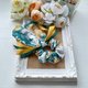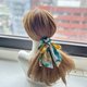 使用美國品牌棉布搭配製作成長尾蝴蝶結、加上緞帶和釘珠做成的髮圈,氣質浪漫,無論上班或休閒聚會都適合配戴。