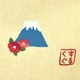 柴尻君們整齊列隊,富士山靜靜佇立其間,椿與松葉點綴其側——