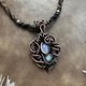 使用天然石,配以純銅線,以繞線方式手作而成, 然後再加上復古做舊效果, 再拋光處理令花紋更具深度和對比.
