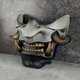 Channel the spirit of the warrior with this striking Samurai Half Mask, crafted to embody strength, mystery, and tradition. The sleek gray finish contrasts boldly with a matte black chin, while the fierce bronze fangs add a powerful, intimidating touch — perfect for cosplay, festivals, or home decor.