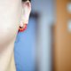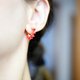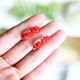 ❄ 這款是讓人聯想到梅花的四連圈形耳環,採用赤珊瑚(紅珊瑚)。