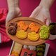 - 日本昭和麵粉,無鹽發酵奶油,糖,雞蛋,抹茶粉,可可粉,杏仁,草莓果醬,牛奶,甜菜根粉,鹽,檸檬,黃槴子粉,食用色素
