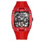 有別於絕大多數運動錶的圓形外觀,OBLVLO 歐弗洛腕錶為【EM02碳纖維系列】賦予相對小眾的酒桶形錶殼,增加與眾不同的識別度。縱橫交錯的立體鏤空面盤,取材自超跑的流線工藝,而橡膠錶帶輕盈服貼的特性,更是展現超跑向來追求輕量化與高速貼背感的舒適性。