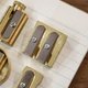優質黃銅削筆器,適用於石墨和彩色鉛筆。附上一個漂亮的皮套可以存放它 材質:黃銅 產地:德國